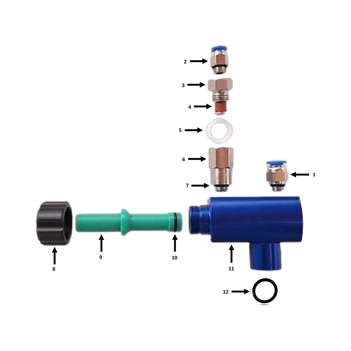 | Peças Câmara Sucção Oval | 0 CÂMARA DE SUCÇÃO DE PÓ OVAL (COMPLETA), 1 CONEXÃO RETA MACHO 1/8" X 08,00 MM, 2 CONEXÃO RETA MACHO 1/8" X 06,00 MM, 3 VÁLVULA DE RETENÇÃO, 4 VEDAÇÃO DA VÁLVULA DE RETENÇÃO, 5 ANEL PLÁSTICO DA VÁLVULA DE RETENÇÃO, 6 ADAPTADOR DA VÁLVULA DE RETENÇÃO, 7 ANEL O’RING DO ADAPTADOR DA VÁLVULA DE RETENÇÃO, 8 PORCA DE FIXAÇÃO DO EJETOR DA CÂMARA, 9 EJETOR DE SUCÇÃO DO PÓ DA CÂMARA, 10 ANEL O’RING DO EJETOR DE SUCÇÃO DO PÓ, 11 CORPO DE ALUMÍNIO DA CÂMARA, 12 ANEL O’RING DA ENTRADA DO PÓ DA CÂMARA |